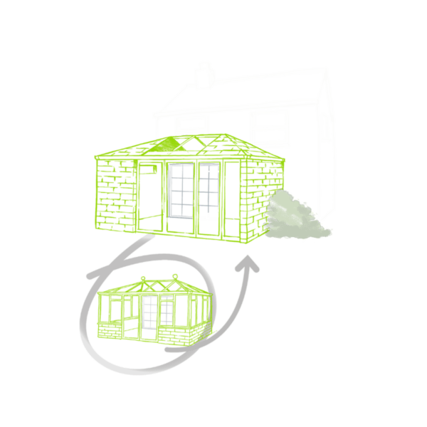 hup! isn’t just fast to build, it’s the more environmentally friendly choice. Our hup! extensions produce 60% less emissions during production than a comparable brick structure.